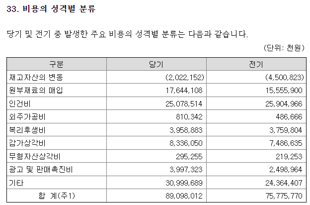이것 역시 원재료 증가와 같이 생각해봄직하다