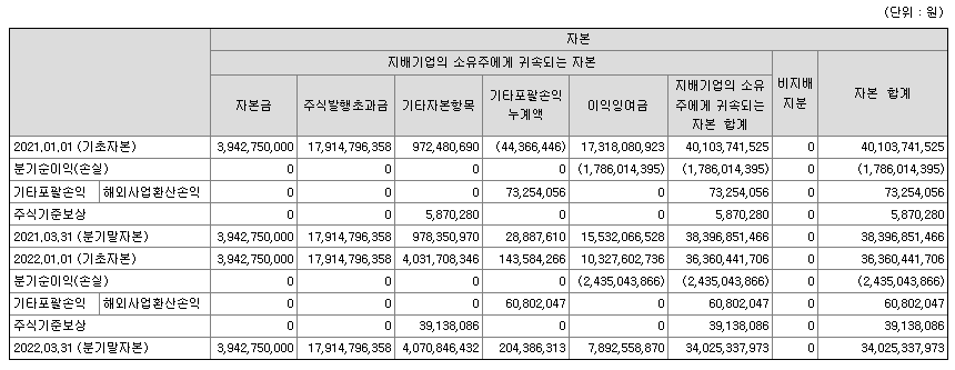 자본변동표에선 딱히 볼게 없다