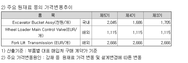 건설기계 (굴삭기,휠로더,지게차 등) 및 부품 제조 판매사업을 영위하는 회사